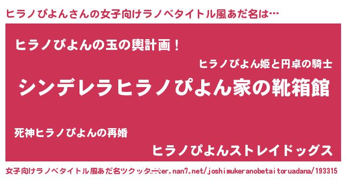 | 男性向けラノベタイトル風あだ名 | 『緋弾のヒラノピヨン』 |
