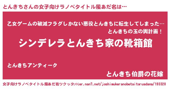 | 男性向けラノベタイトル風あだ名 | 『冴えないとんきちの育てかた』 |