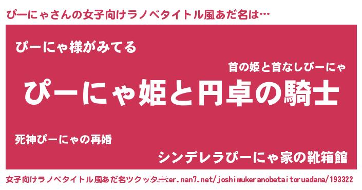 | 胡散臭い通販商品みたいなあだ名 | 『モテモテ間違いなしブレスレット…その名も「ぴーにゃ」』 |