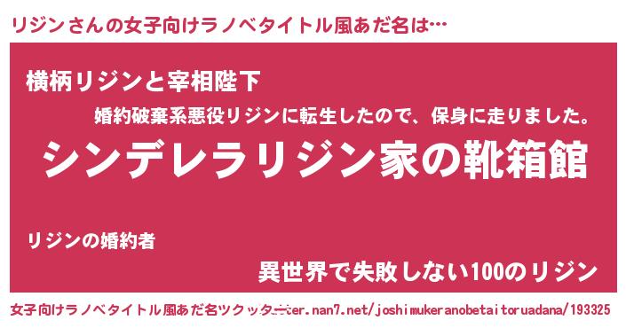 | 男性向けラノベタイトル風あだ名 | 『緋弾のリジン』『リジンスレイヤー』 |