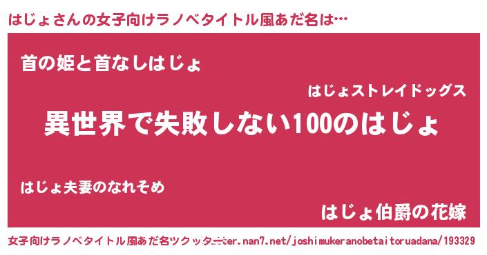 | 男性向けラノベタイトル風あだ名 | 『はじょという概念が存在しない退屈な世界 』 |