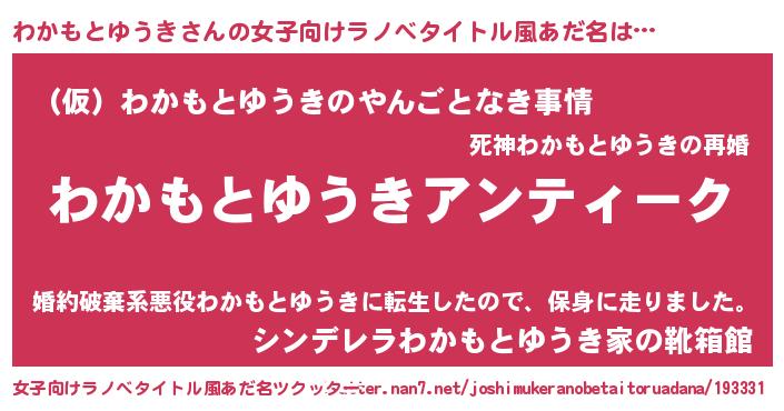 | 肩書あだ名 | 『わかもとゆうき閣下』 |