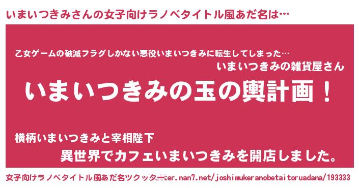 | ヘコむあだ名 | 『いまいつきみ(苦笑)』『牛乳』 |