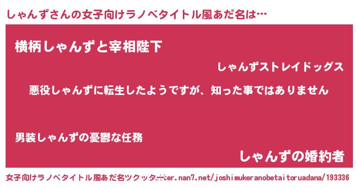 | 男性向けラノベタイトル風あだ名 | 『この素晴らしい世界にしゃんずを!』 |
