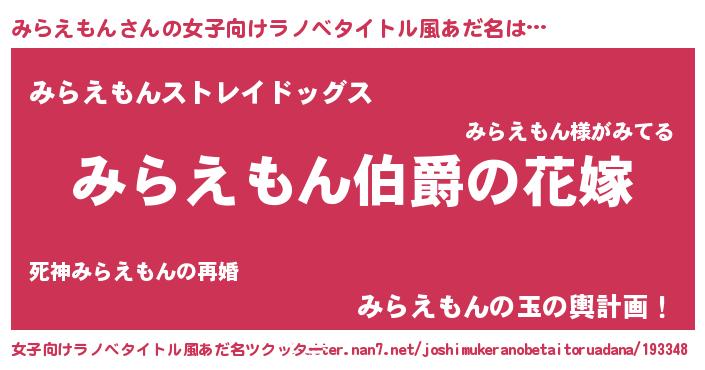 | 意味不明あだ名 | 『みらえもんフォーエバー』 |