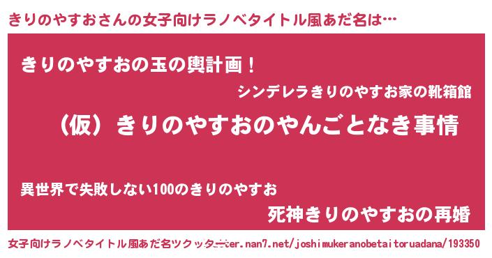 | 男性向けラノベタイトル風あだ名 | 『きりのやすおの憂鬱』 |