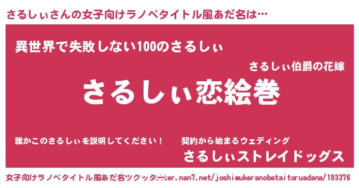 | ヒーロー風カッコイイあだ名 | 『愛の使者さるしぃ』『ネオサルシィ』 |