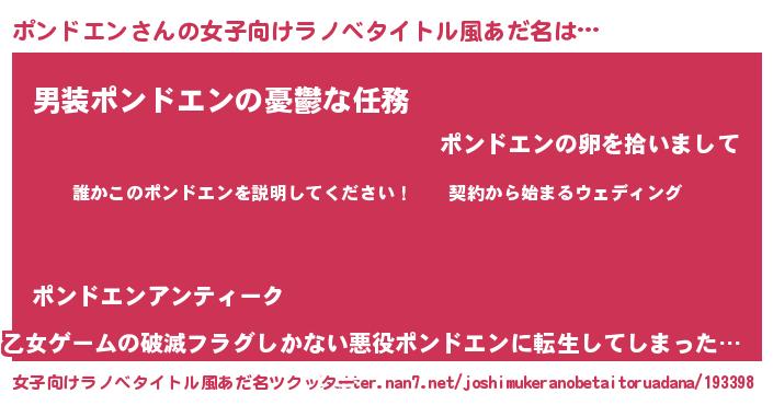 男性向けラノベタイトル風あだ名 | 『ポンドエンアートオンライン』 |