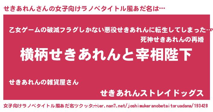 | 意味不明あだ名 | 『住所不定無職せきあれん(89歳)』 |