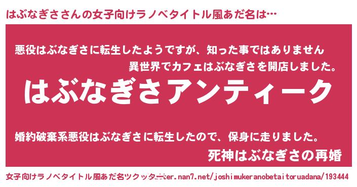 | 意味不明あだ名 | 『自称はぶなぎさ』『永久保存はぶなぎさ』 |