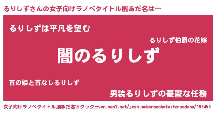 | 意味不明あだ名 | 『自称るりしず』『るりしずフォーエバー』 |