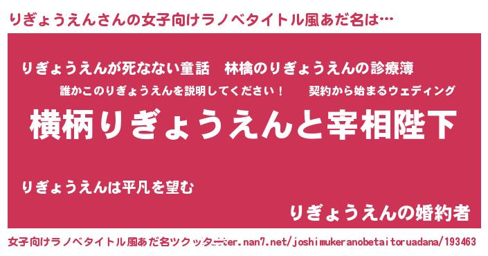 | 男性向けラノベタイトル風あだ名 | 『りぎょうえんに滅ぼされるだけの簡単なお仕事です』 |