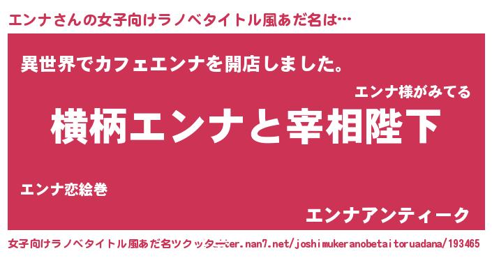 | 男性向けラノベタイトル風あだ名 | 『エンナに滅ぼされるだけの簡単なお仕事です』 |
