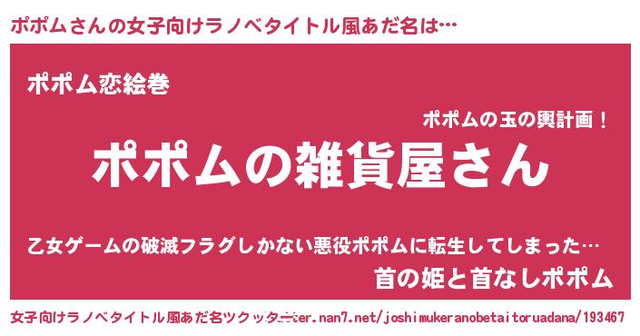 | 男性向けラノベタイトル風あだ名 | 『やはりポポムの青春ラブコメはまちがっている 』 |