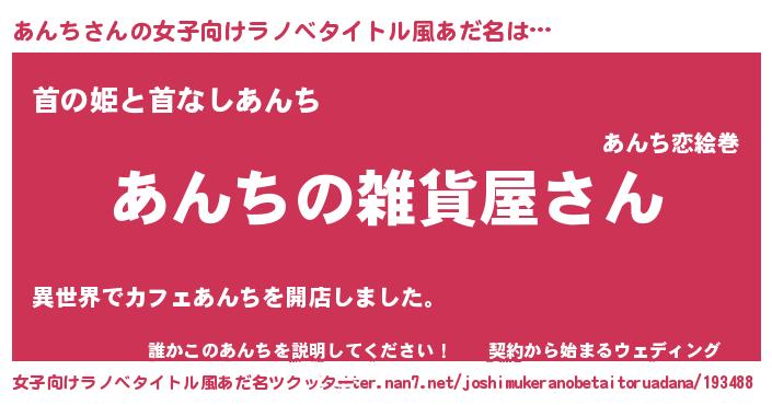 | 男性向けラノベタイトル風あだ名 | 『やはりあんちの青春ラブコメはまちがっている 』 |