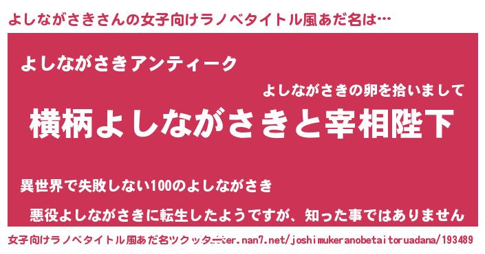 | 男性向けラノベタイトル風あだ名 | 『よしながさきに滅ぼされるだけの簡単なお仕事です』 |