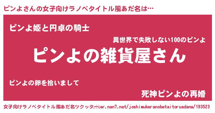 | 男性向けラノベタイトル風あだ名 | 『やはりピンよの青春ラブコメはまちがっている 』 |