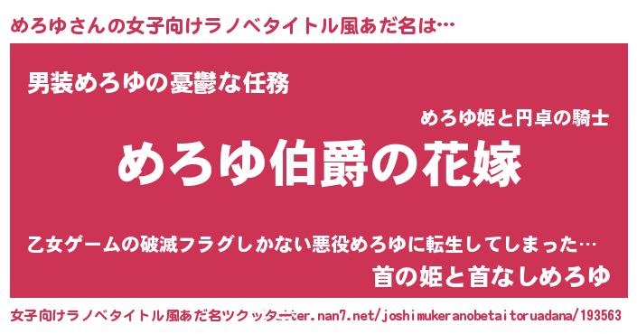 | 胡散臭い通販商品みたいなあだ名 | 『世界が平和になる高級そうな壺…その名も「めろゆ」』 |