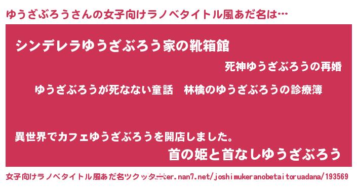 | 男性向けラノベタイトル風あだ名 | 『魔弾の王とゆうざぶろう』 |