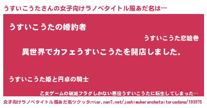 | ヒーロー風カッコイイあだ名 | 『ネオウスイコウタ』『仮面ウスダー』 |