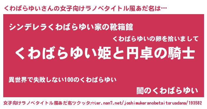 | 男性向けラノベタイトル風あだ名 | 『くわばらゆいの憂鬱』 |