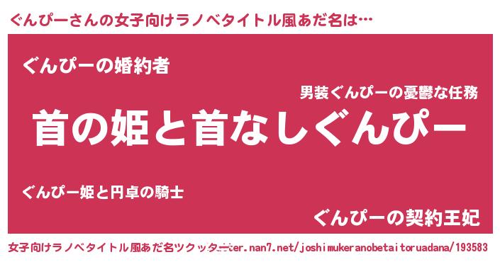 | 男性向けラノベタイトル風あだ名 | 『はたらくぐんぴーさま!』 |