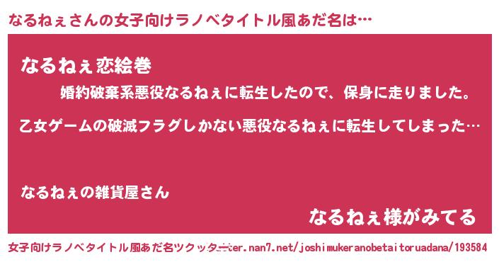 | ヒーロー風カッコイイあだ名 | 『仮面ナルダー』『友情の使者なるねぇ』 |