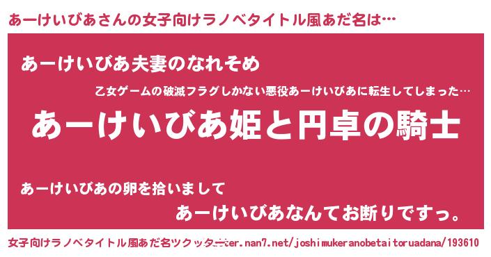 | 男性向けラノベタイトル風あだ名 | 『あーけいびあの憂鬱』 |