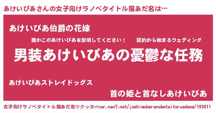 | 意味不明あだ名 | 『あけいびあフォーエバー』 |