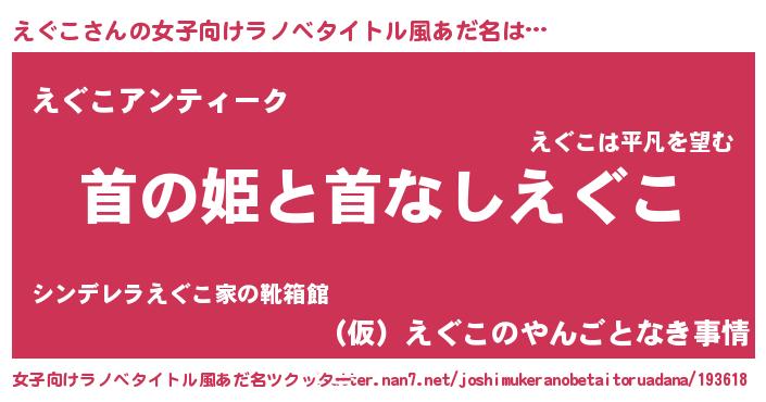 | 意味不明あだ名 | 『自称えぐこ』『ペロリンえぐこ』 |