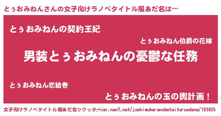 | 意味不明あだ名 | 『永久保存とぅおみねん』 |