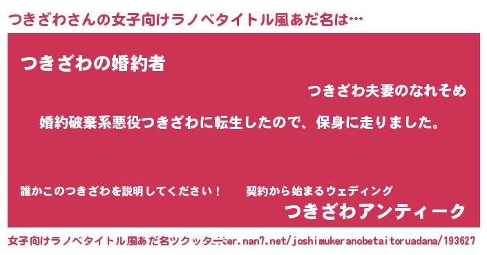 | 男性向けラノベタイトル風あだ名 | 『転生したらつきざわだった件』 |