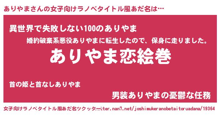 | ヒーロー風カッコイイあだ名 | 『慈愛の使者ありやま』『ネオアリヤマ』 |