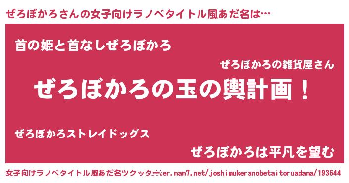 | 男性向けラノベタイトル風あだ名 | 『転生したらぜろぼかろだった件』 |