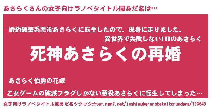 | ヘコむあだ名 | 『あさらく(苦笑)』『牛乳』 |