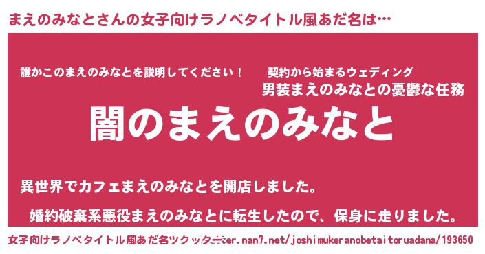 | 意味不明あだ名 | 『自称まえのみなと』 |