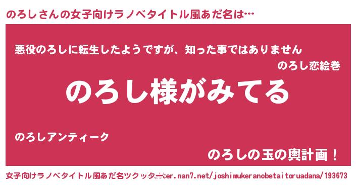| 男性向けラノベタイトル風あだ名 | 『のろしの嫁は女の子じゃないと思った?』 |