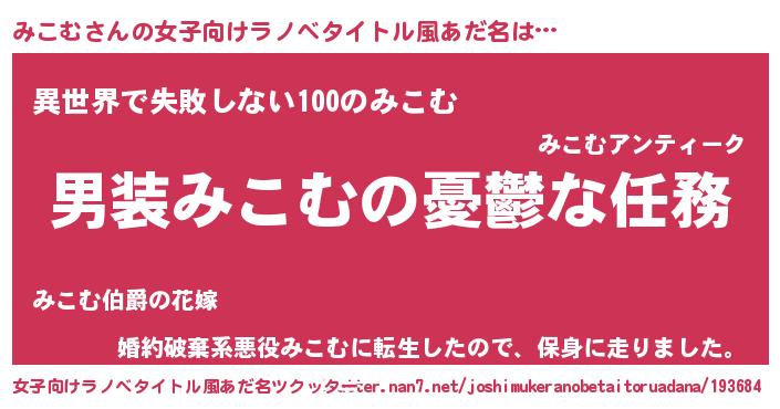 | 意味不明あだ名 | 『永久保存みこむ』『エリンギ科みこむ属』 |