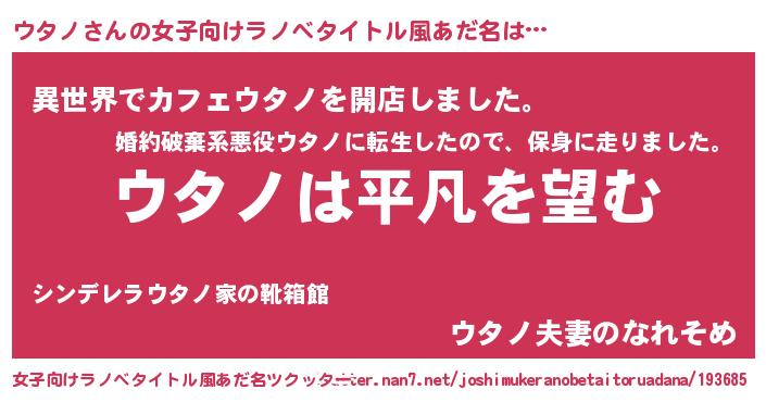 | 男性向けラノベタイトル風あだ名 | 『ダンジョンにウタノを求めるのは間違っているだろうか』 |