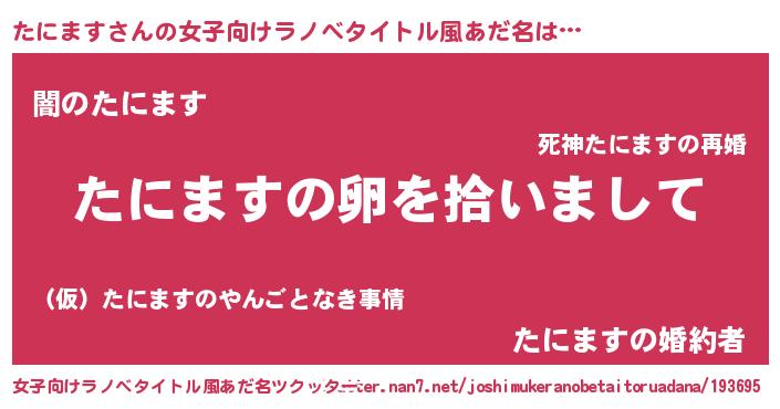 | 萌えアニメ | 主人公(たにます)のあだ名『 たにたに』 |