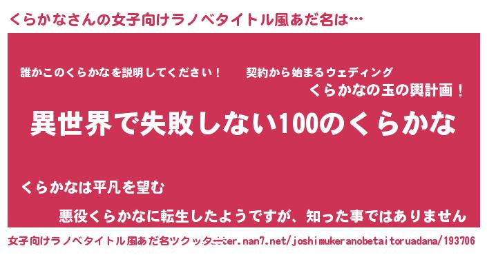| 胡散臭い通販商品みたいなあだ名 | 『絶対に幸福をもたらす水素水…その名も「くらかな」』 |