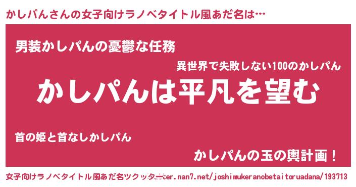 | 胡散臭い通販商品みたいなあだ名 | 『信頼と実績のネックレス…その名も「かしパん」』 |