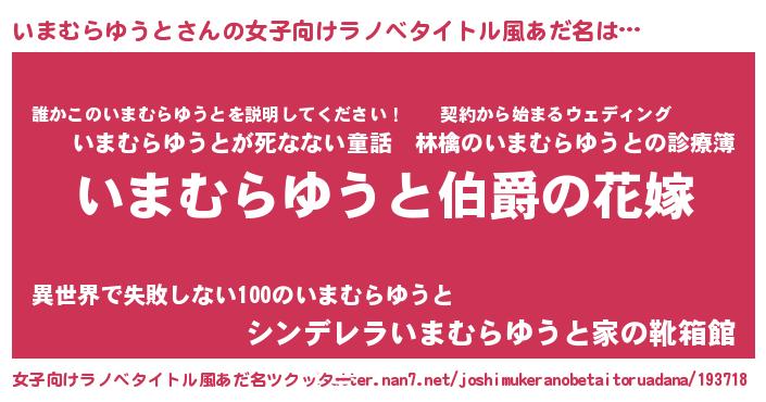 | 伝説のあだ名 | 『最古の陰陽師いまむらゆうと』 |
