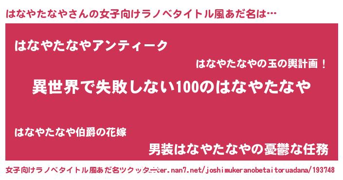 | 男性向けラノベタイトル風あだ名 | 『はなやたなやという概念が存在しない退屈な世界 』 |