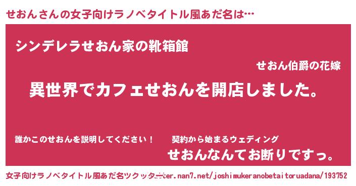 | ヘコむあだ名 | 『せおん(笑)』『豆乳』『せおにー』 |