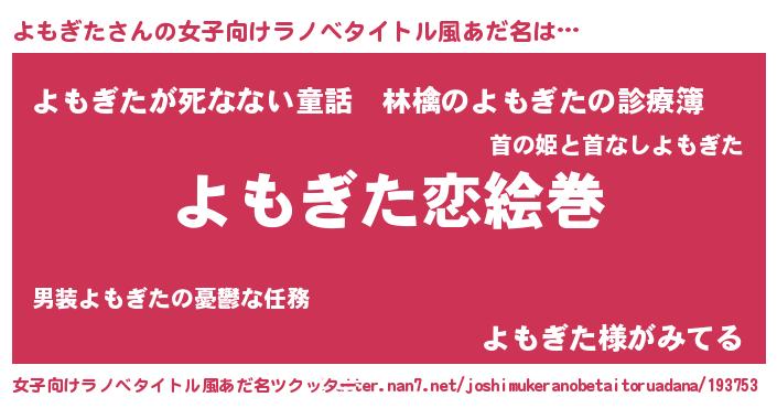 | 男性向けラノベタイトル風あだ名 | 『ノーゲーム・ノーヨモギタ』 |