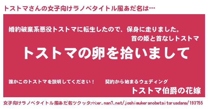 | 胡散臭い通販商品みたいなあだ名 | 『伝統あるネックレス…その名も「トストマ」』 |