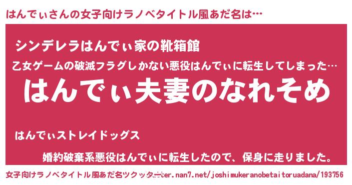 | ヘコむあだ名 | 『はんでぃ(遠い目)』『つくし』 |