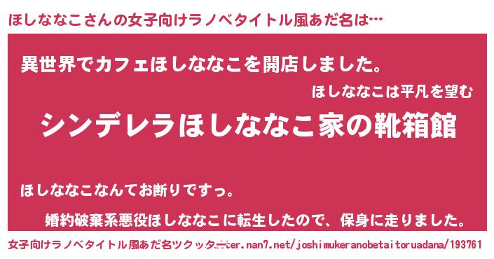 | 胡散臭い通販商品みたいなあだ名 | 『来世でも幸せになれる水素水…その名も「ほしななこ」』 |