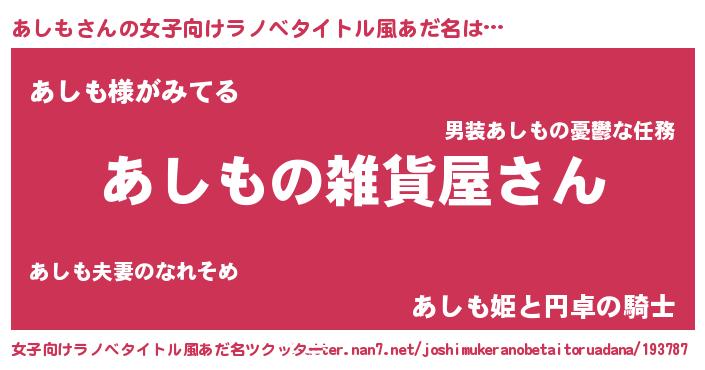 | 男性向けラノベタイトル風あだ名 | 『やはりあしもの青春ラブコメはまちがっている 』 |